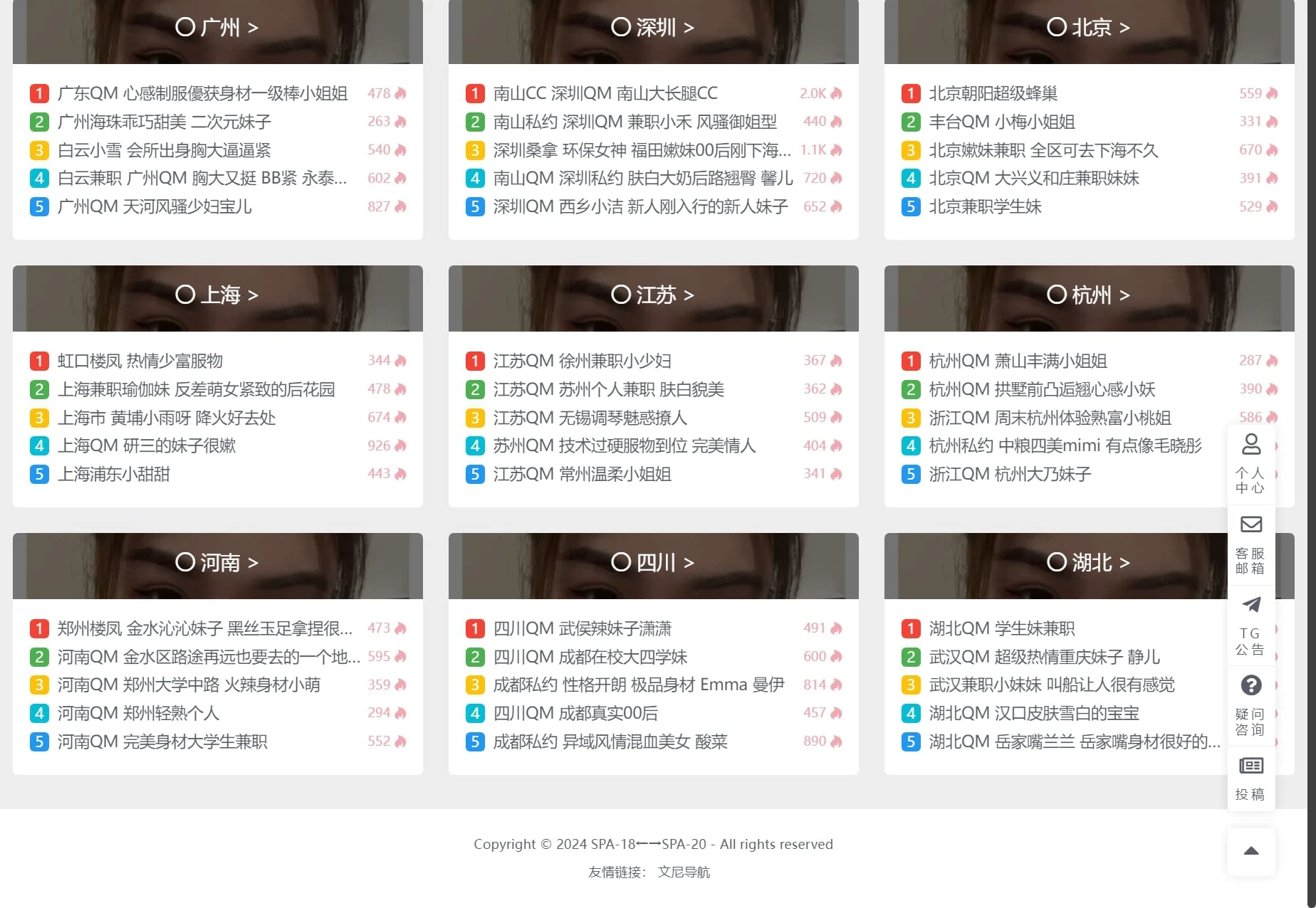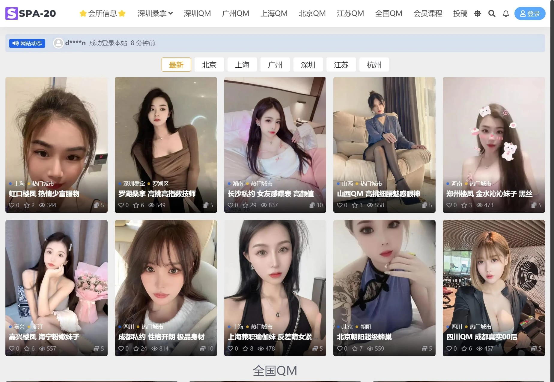 “SPA-20”是一个专注于高端会所和私人服务的信息聚合平台,展示不同城市的会所项目与个体服务提供者。用户可以通过城市分类快速筛选服务,网站内容突显“QM”(情趣按摩)和“楼凤”主题,旨在吸引用户寻求私密体验的兴趣。
