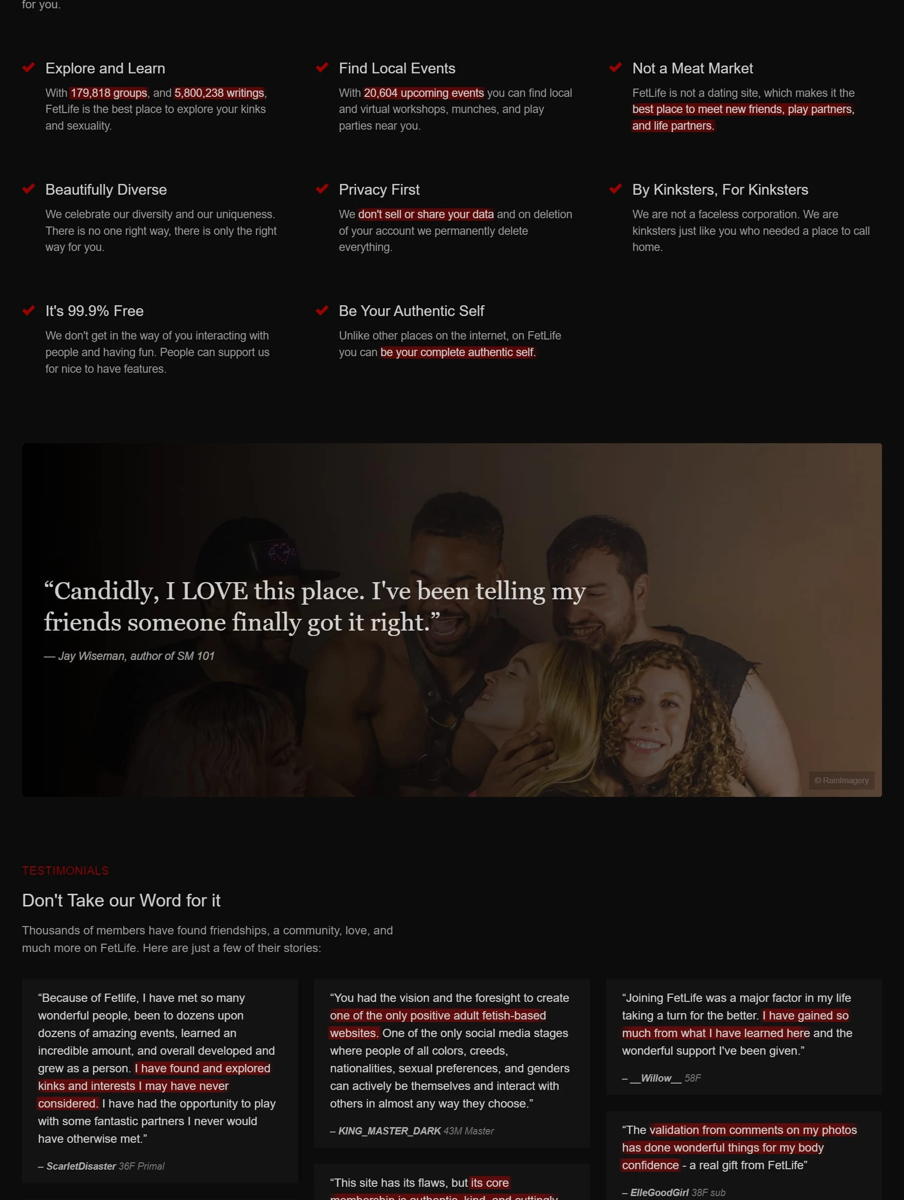 FetLife 是一个全球最大的 BDSM、恋物癖(fetish)和“kink”爱好者社交网络。它不仅提供多样化的社交互动机会,还为全球用户创造了一个开放、包容的空间。平台强调用户对自己性身份的舒适感,鼓励探索个人兴趣,同时通过分享经验与活动促进社群的成长。