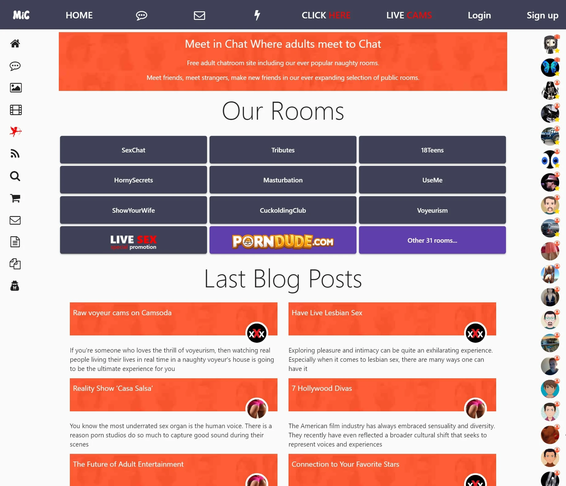 Meet in Chat 是一个成人社交聊天平台,旨在为用户提供多样化的在线互动体验。该网站以其丰富的聊天房间和实时通讯功能吸引用户,并支持通过文字、语音与陌生人交流,营造一个开放的社交氛围。该平台既能满足公共聊天室的群聊需求,又支持一对一的私人聊天,帮助用户拓展社交圈。