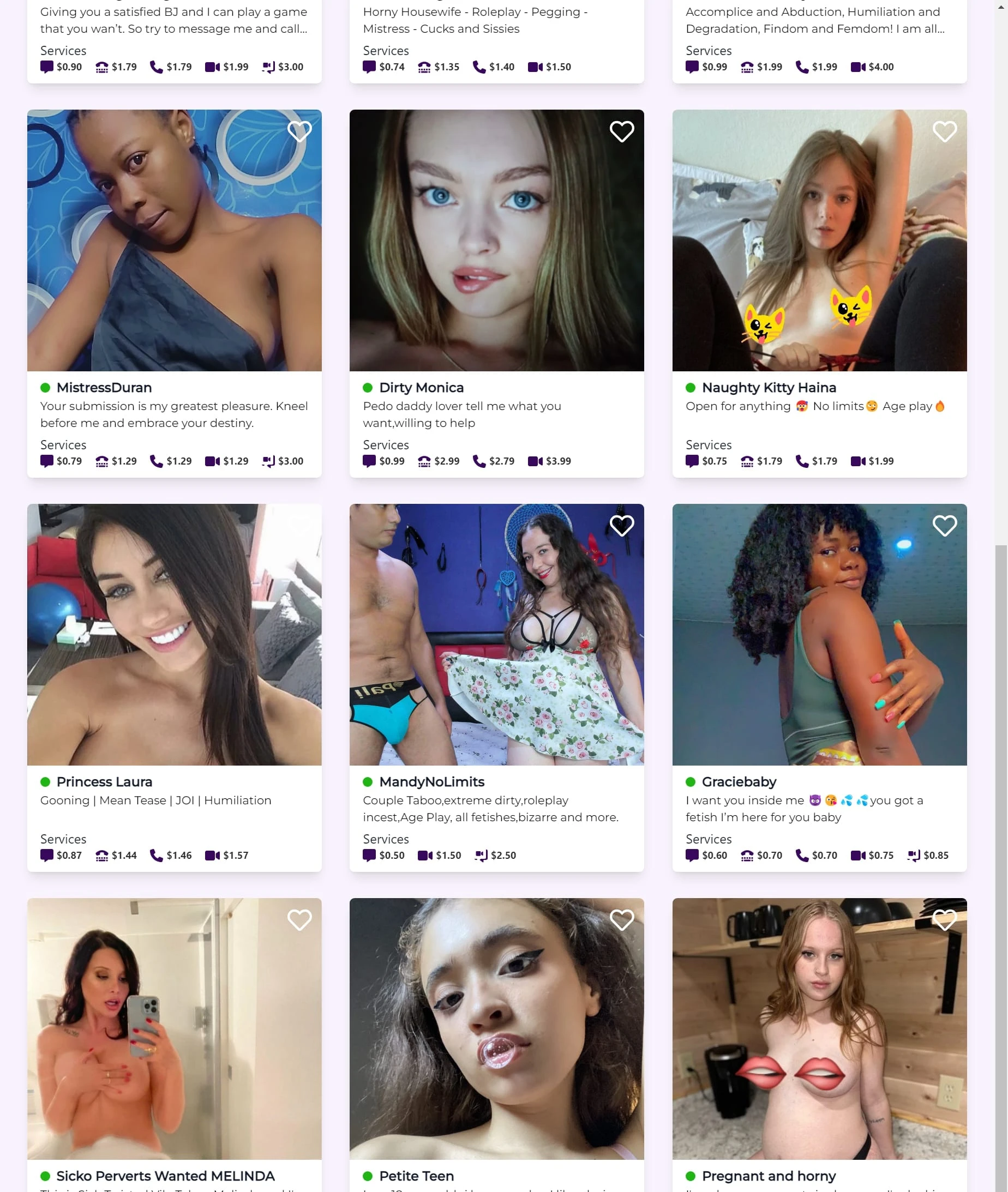 该网站展示了多位提供特定服务的个人,侧重于与用户互动及定制化的服务体验。每位个人均展示了自身的简介及擅长的项目,服务的范围非常广泛,覆盖了从角色扮演到极具个性化的需求。网站旨在吸引特定用户群体,以其独特的服务和展示形式,为客户提供一种个性化和即时的互动方式。
