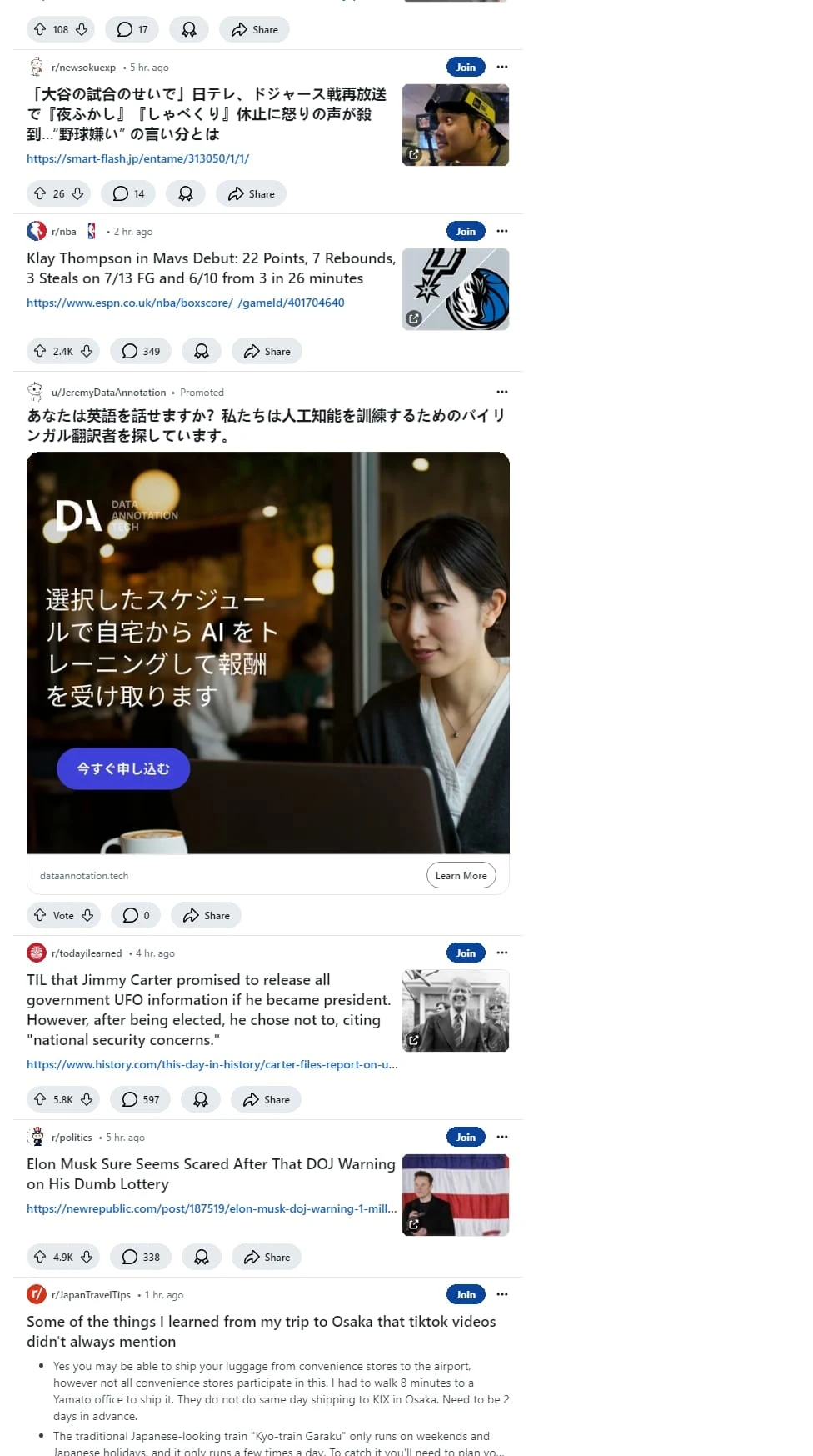Reddit 是全球领先的社区型论坛平台,被称为“互联网的首页”。用户可以在这个平台上分享、评论并对帖子进行投票。Reddit 包含多个名为“subreddits”的子版块,每个版块都围绕特定主题展开,如新闻、娱乐、体育、科技和生活方式。该平台支持用户生成内容(UGC),并且依靠投票机制来决定内容的曝光度。