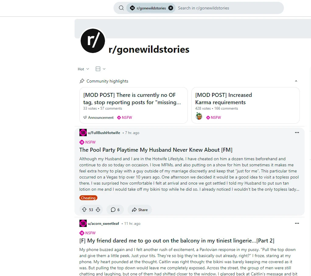 Reddit GoneWild Stories