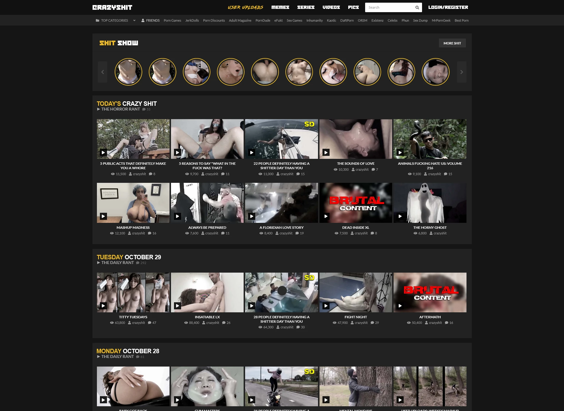 该网站以内容极具视觉冲击力和刺激感为特色,涵盖了各种重口味的主题内容。它主要发布各种类型的极限内容和另类素材,目标用户为喜欢猎奇、寻求刺激的观众。网站的界面设计以暗色调为主,突显出沉重和神秘的氛围,为用户带来一种不寻常的观看体验。