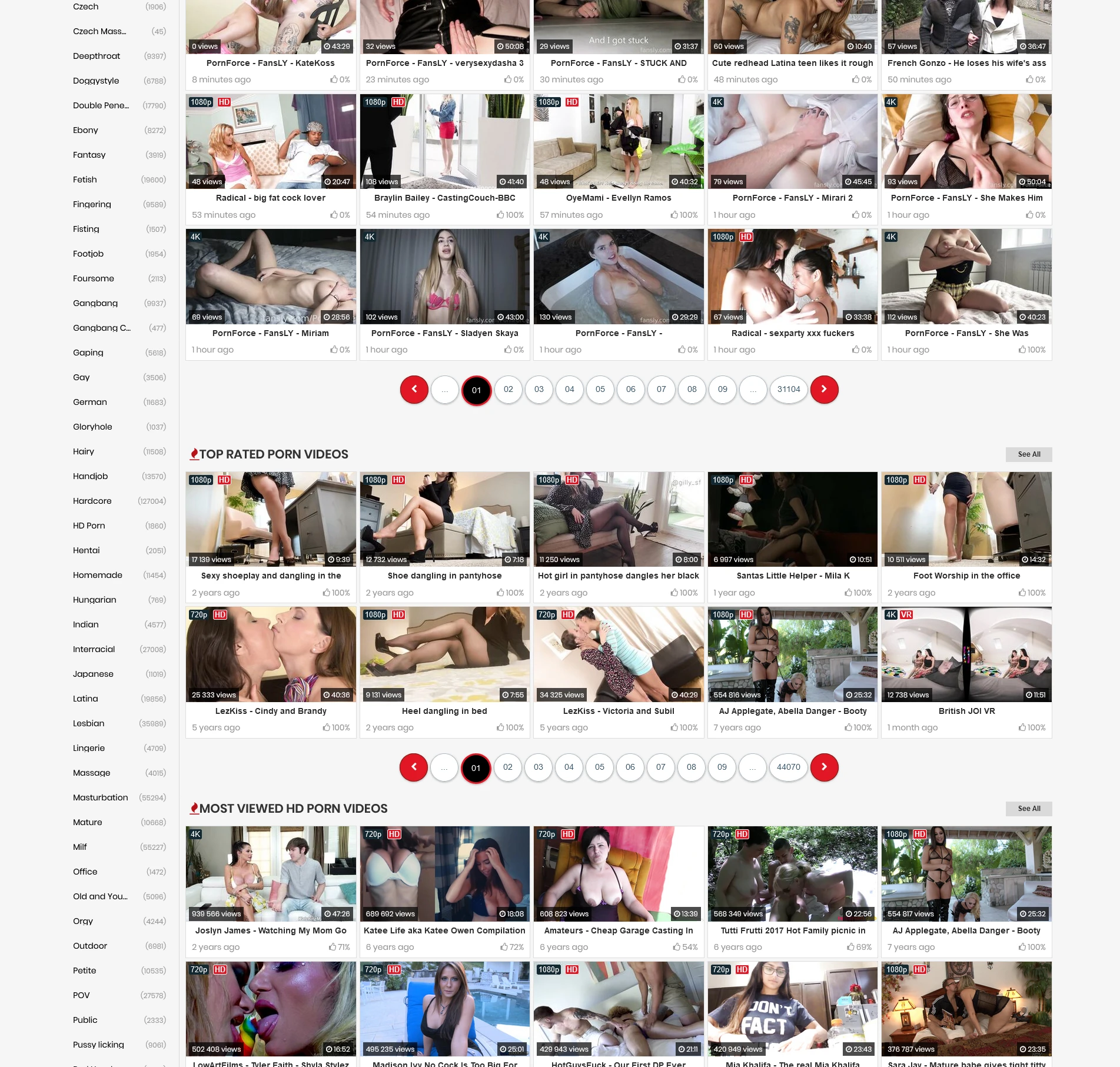 该网站是一个成人内容聚合平台,主要收录各种类型的高清视频资源,包括不同国家、种族、类型和情节的成人影片。网站首页展示丰富的缩略图和标签,使用户可以轻松选择他们感兴趣的视频内容。 2. 网站特点