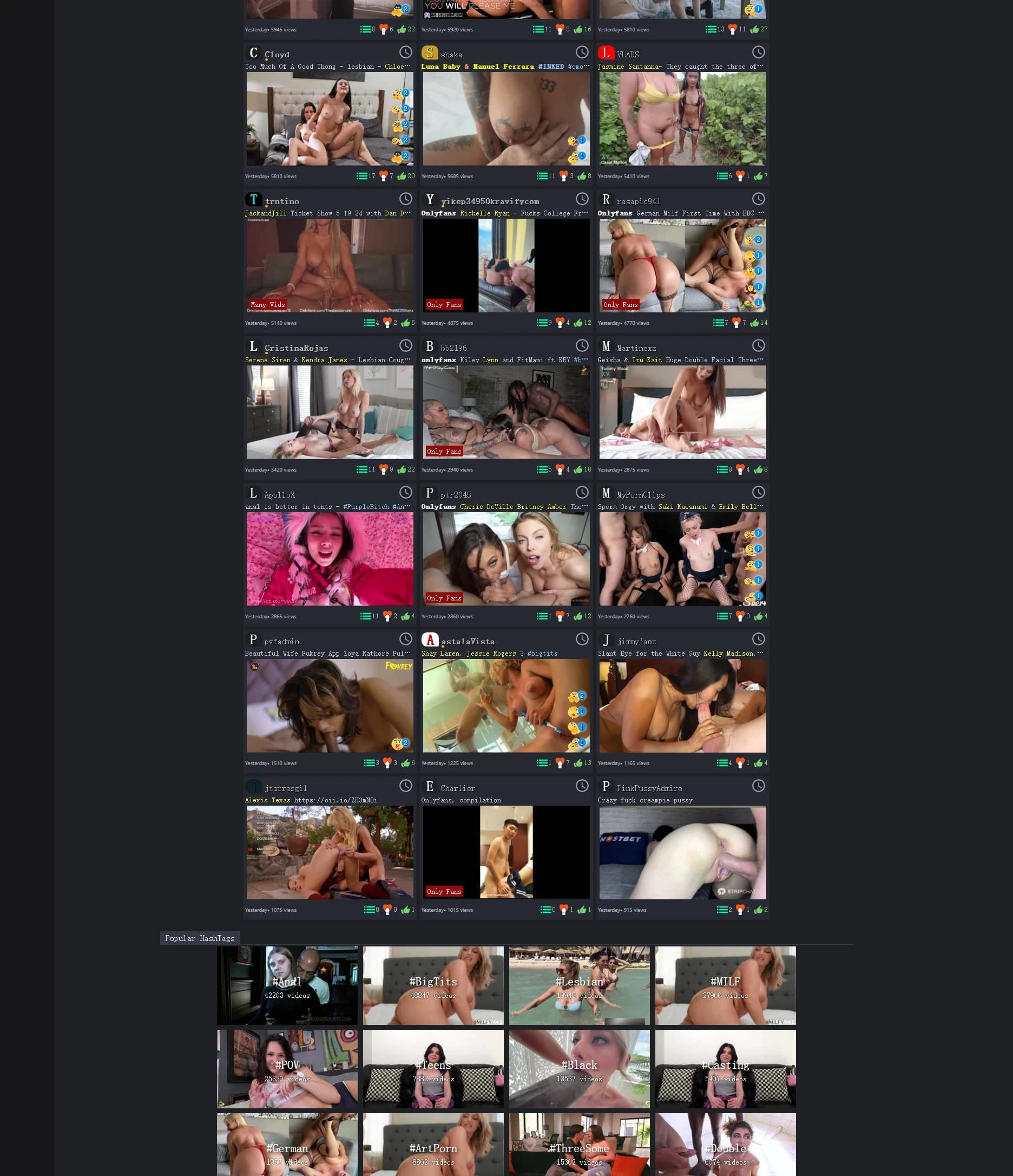 该网站是一款成人视频分享平台,提供丰富的内容类别,覆盖多种性取向和视频类型,以满足不同用户的观看需求。用户可以在网站上浏览免费及付费视频内容,也可以查看高质量的图片和GIF。视频内容按关键词进行分类,使得用户可以轻松搜索到所需的内容。