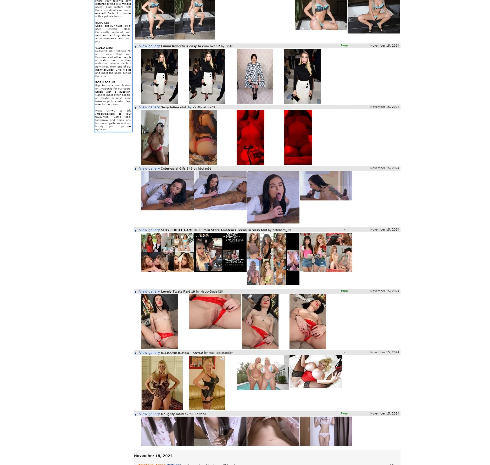 ImageFap 是一个专注于用户生成内容和共享的成人图片托管与浏览平台。其平台以庞大的图片图库和多样化的用户社区为核心,允许注册用户上传、分享并收藏各种类别的成人内容图片。同时,ImageFap 提供直观的分类浏览和个性化收藏功能,使用户能够快速找到自己感兴趣的内容。