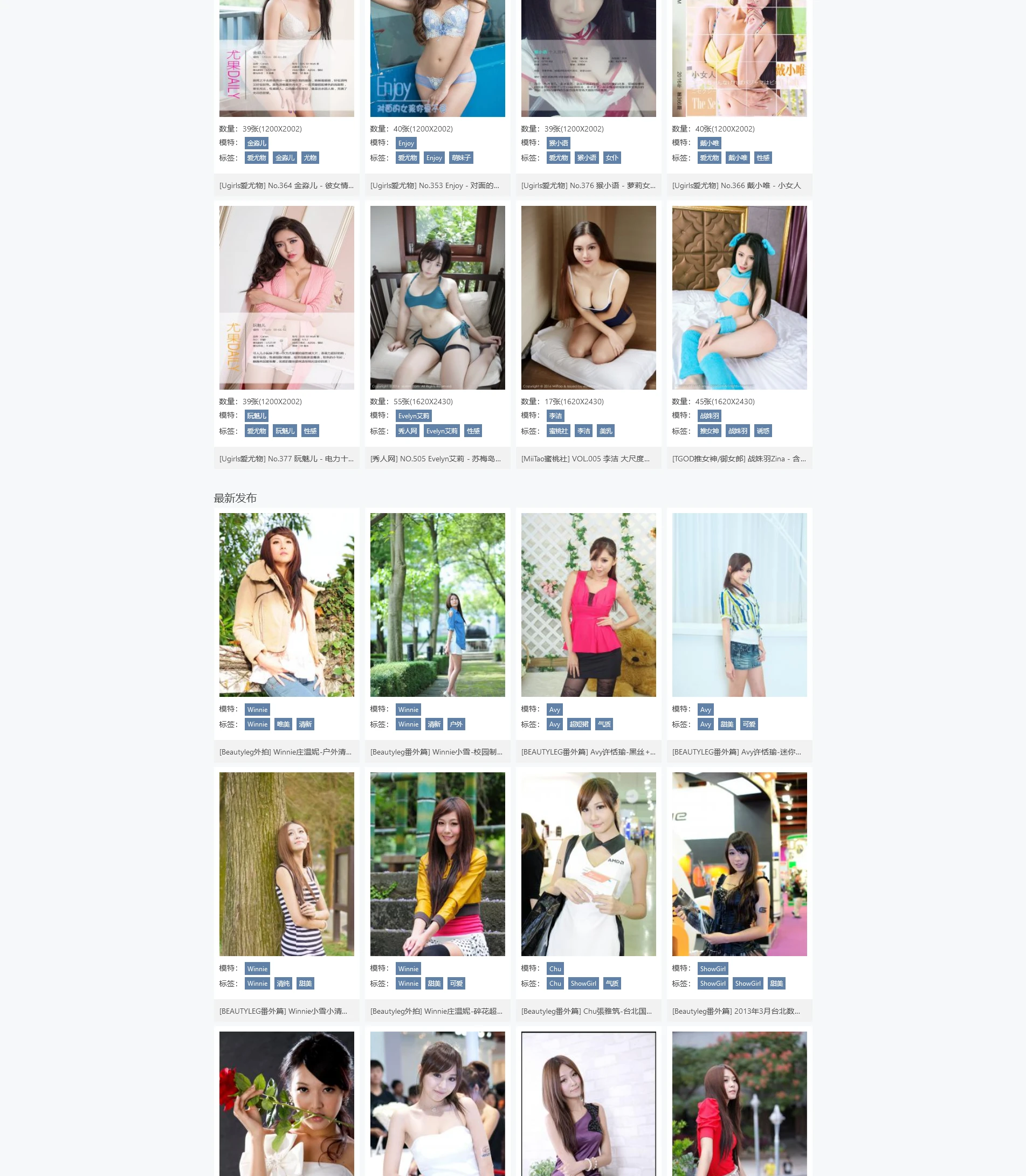 该网站以展示精美的模特写真为主要内容,集中呈现年轻女性的形象,通过高清图片和视频内容展现模特的魅力。页面设计简洁清晰,导航友好,内容分类细致,适合对视觉享受有高要求的用户群体。