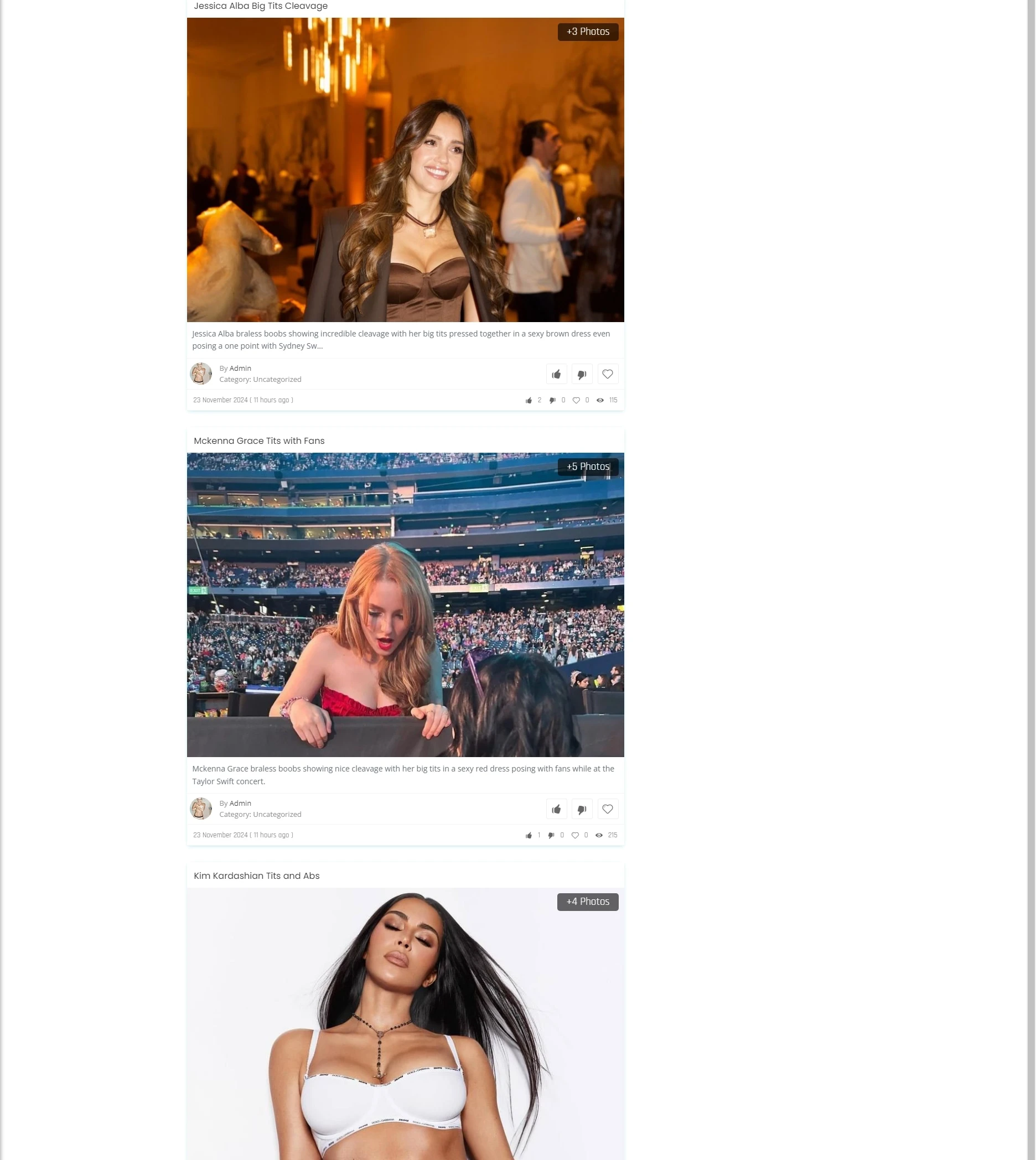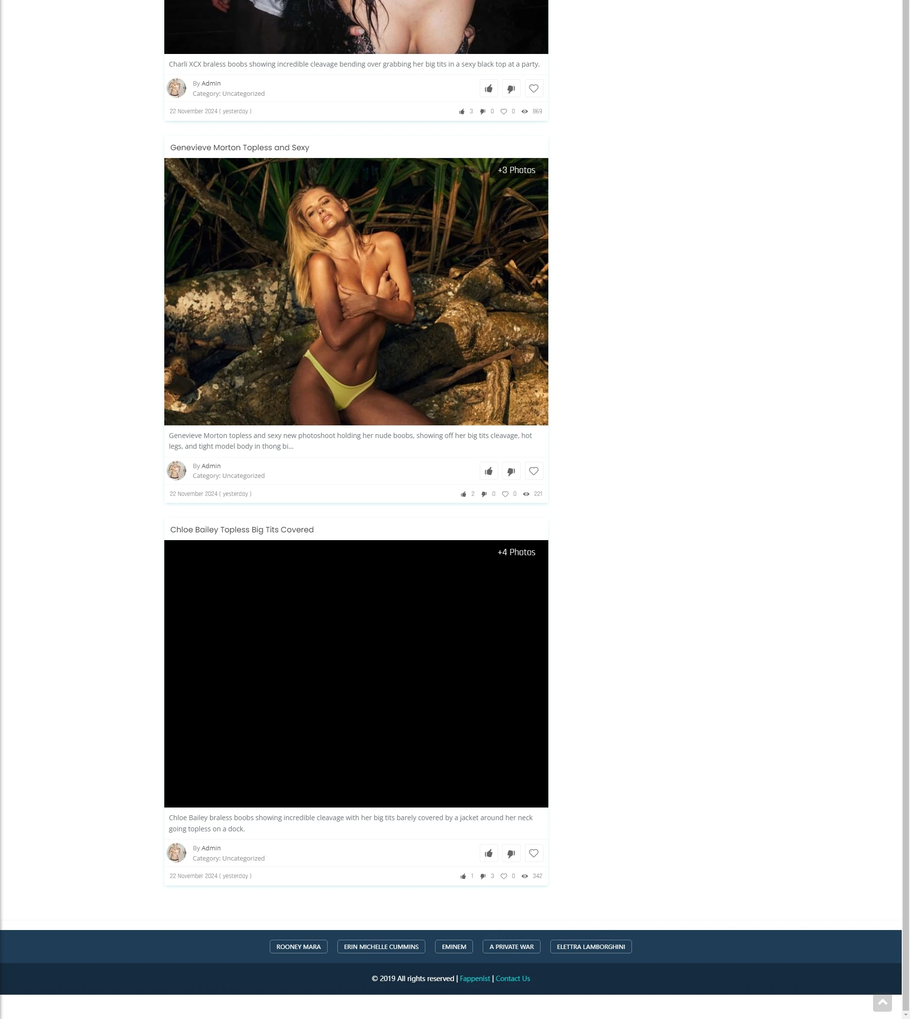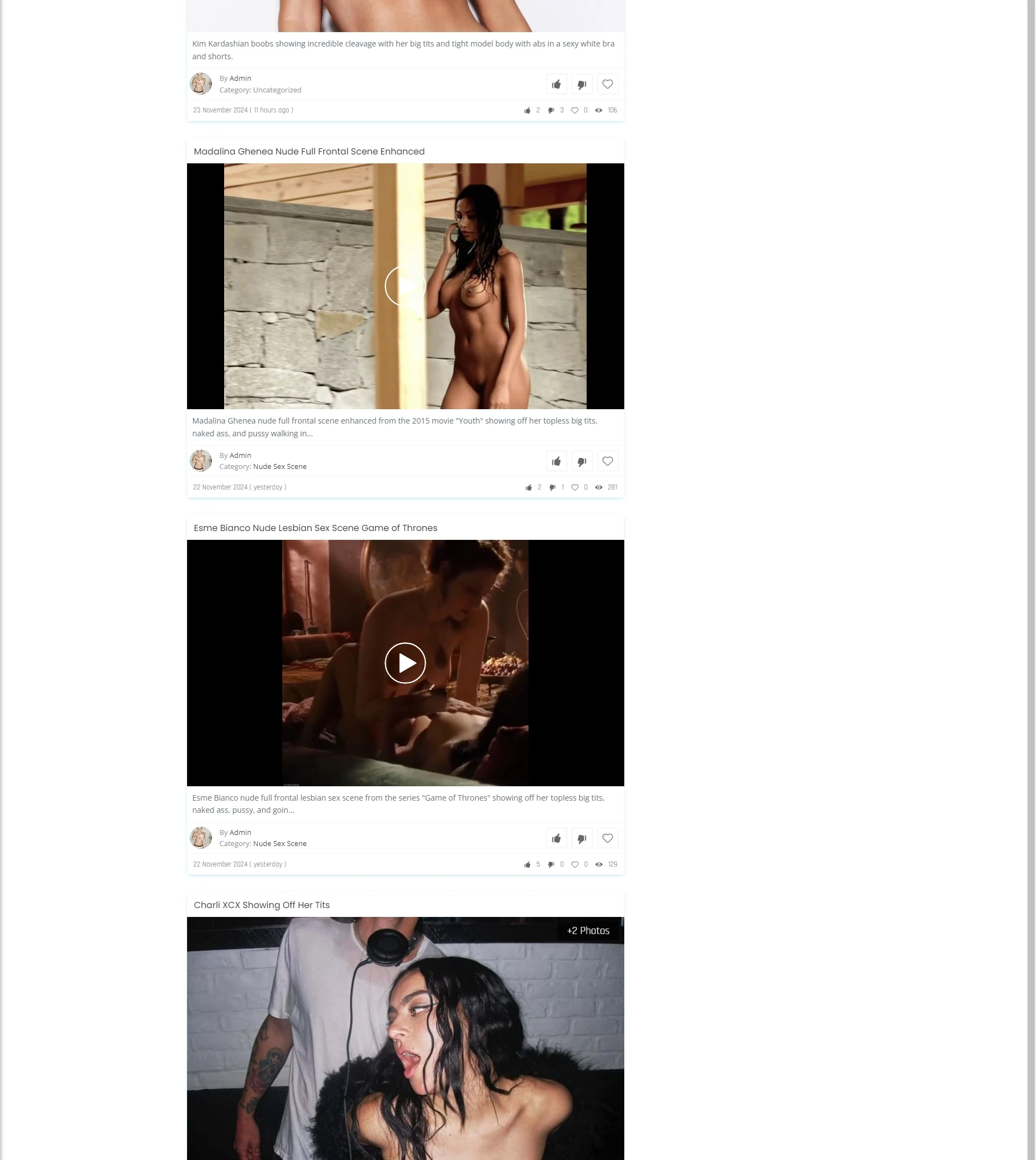 该网站是一个专注于名人裸照、私密视频及照片的内容聚合平台,主要以高清图片、短视频和GIF的形式展现各种明星的性感素材。其核心目的是吸引用户通过视觉冲击力强的内容获取高点击量,满足用户对名人私密内容的好奇心。