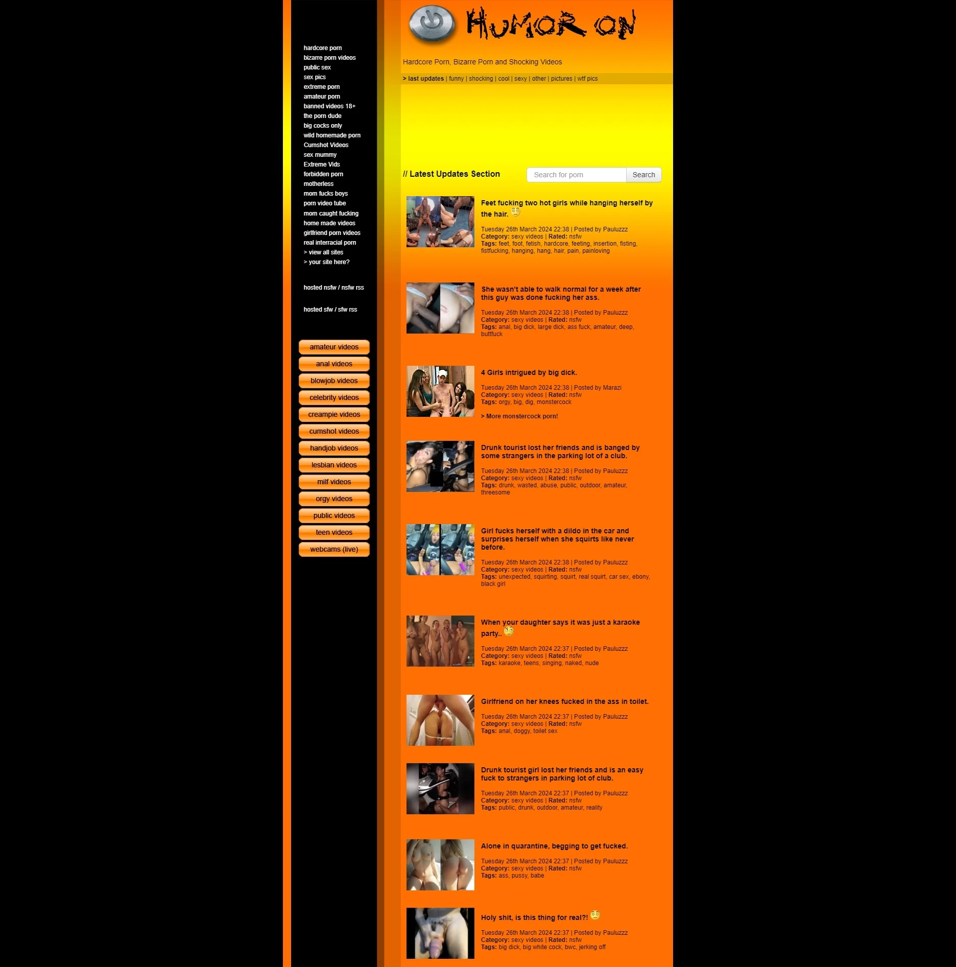 Humoron.com!奇怪和怪异的东西有时候会让人觉得很性感。而幸运的是,这就是Humor On上分享的大多数内容。这个网站上充斥着大量由用户上传的、很傻的、非常颓废的成人内容。