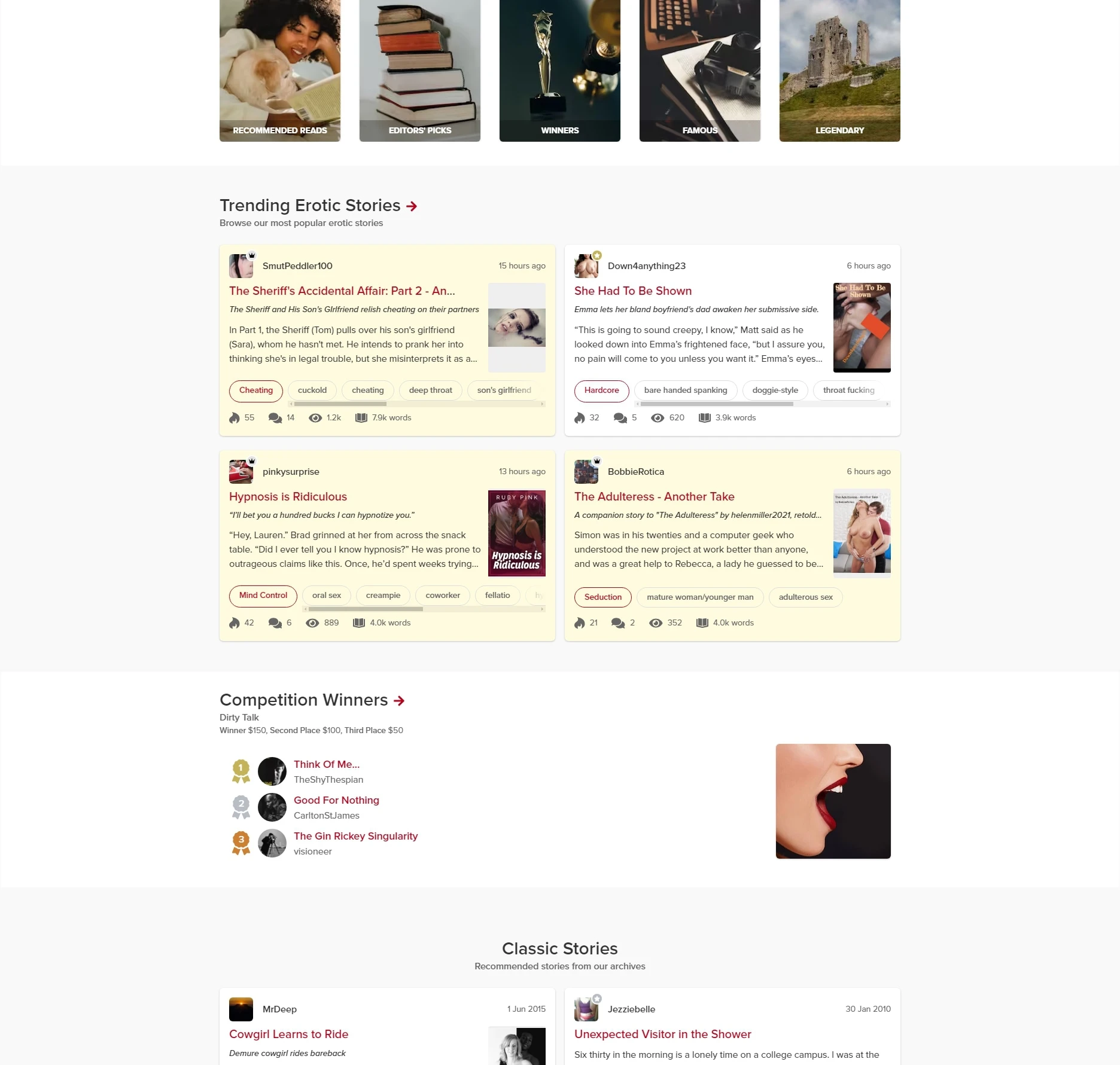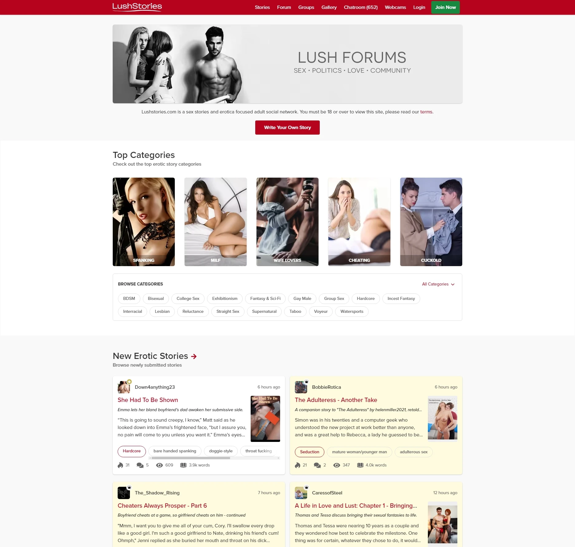 Lush Stories是一个专注于成人短篇小说分享和互动的社交网络平台。该网站提供丰富的情色故事分类,用户可以浏览、阅读或撰写自己的故事,同时参与论坛、聊天室以及社区活动。它集阅读、社交和内容创作于一体,为热衷于文字表达的用户创造了一个开放而多元的交流空间。