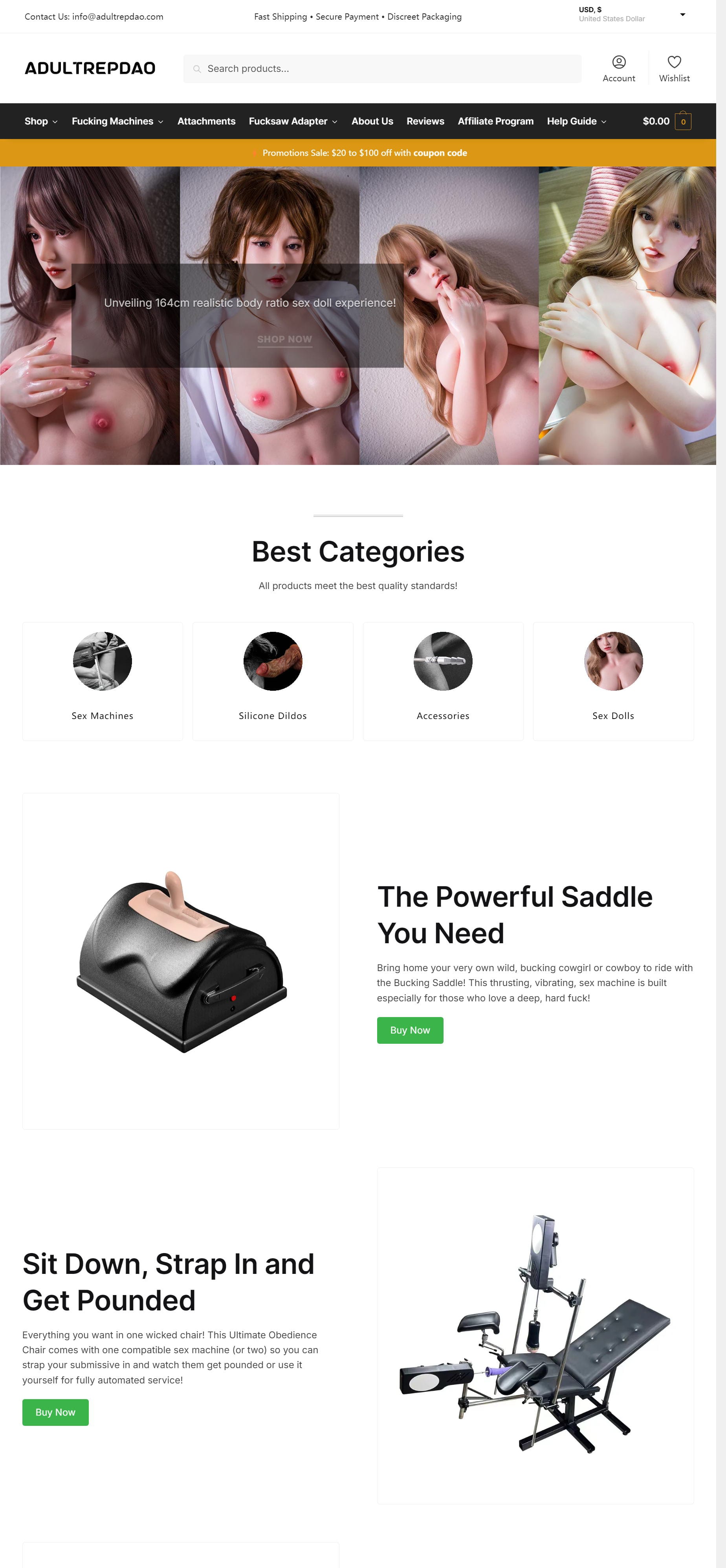 AdultRepDao 是一家专门提供成人性玩具与性机器的在线商店,旨在为用户提供多样化的高质量产品,涵盖从仿真玩偶到机械辅助的性体验设备。